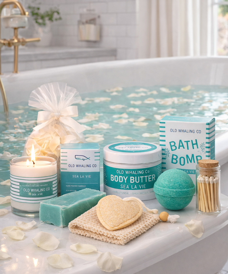 When Luxury Counts! Sea La Vie Luxury Spa Gift Box is a beautifully curated self-care experience featuring the beloved Sea La Vie fragrance by USA-based Old Whaling Co.® in Charleston, South Carolina. Known for crafting high-quality bath and body products inspired by coastal living, Old Whaling Co.® blends clean ingredients with timeless scents that feel fresh, refined, and relaxing. Sea La Vie is one of their most popular fragrances, combining sweet florals and citrus on a gentle coastal breeze. Notes of seashore, rose, jasmine, and fresh apple rest over a soft base of white musk, violet, orange flower, and sandalwood—creating a scent that is both uplifting and elegant.
